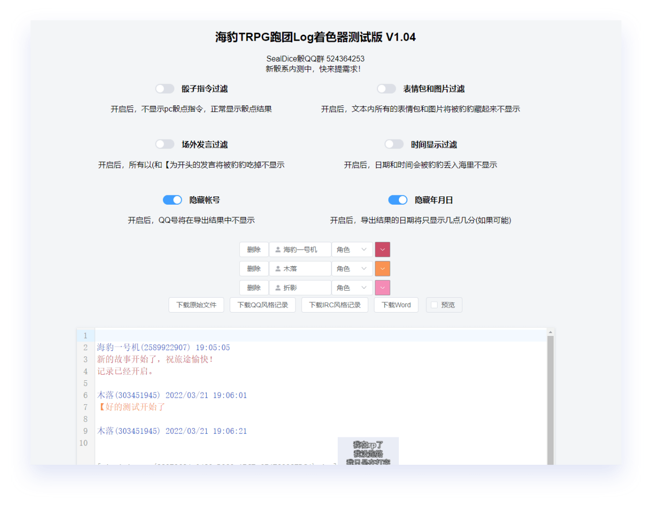 你可以使用海豹骰生成的log在回声工坊一键自动生成跑团视频!