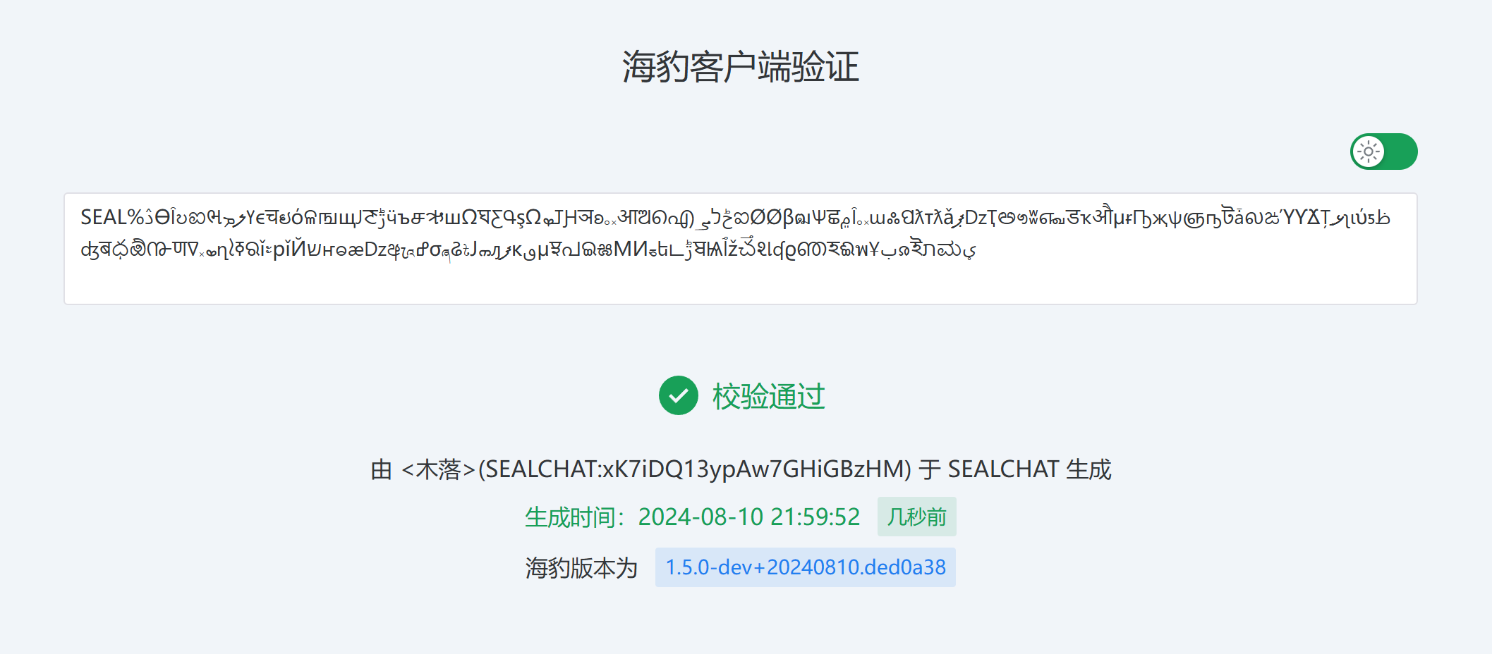使用.check命令,得到神秘海豹码后,在此页面可查看你的海豹是否为官方版本